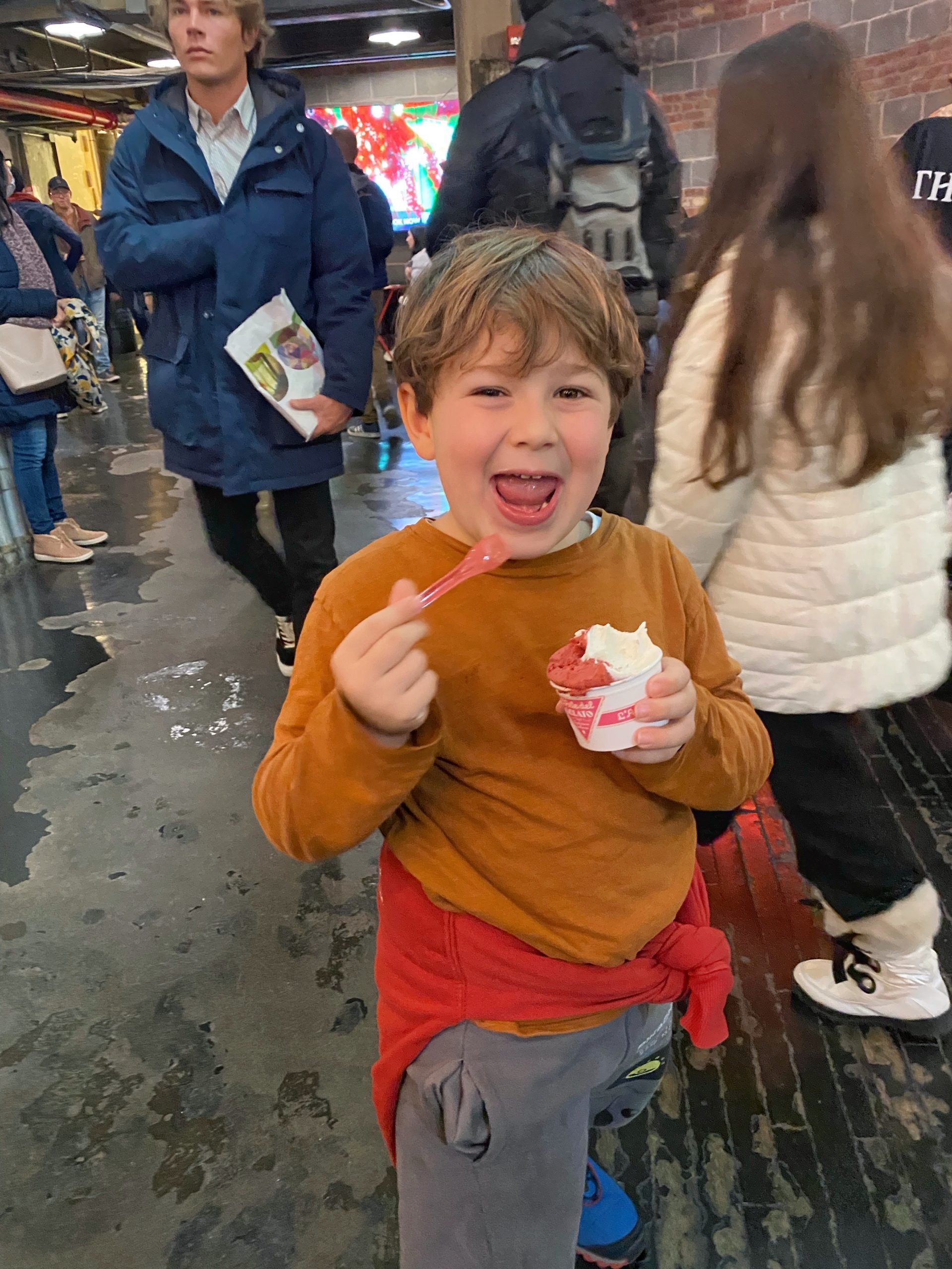 Come musei abbiamo visto solo l’American Museum of Natural History, quello per intenderci di Una notte al Museo che durante il primo viaggio avevo visto solo io ma che ho rivisto con piacere. Poi abbiamo visto il Guggenheim e infine siamo tornati al Top of the Rock (che avevamo già visto la prima volta). L’American Museum of Natural History l’abbiamo rivisto per il piacere di Giulio, anche se a lui non è interessato molto. C’è da dire che rispetto ad alcuni musei di storia europei, molto interattivi, il Museo di Storia Naturale di New York, non solo non è affatto interattivo, ma è anche molto grande e necessita di tante spiegazioni per un bambino di 7 anni che preferirebbe toccare tutto e interagire con la storia e la scienza. Mi hanno invece suggerito un museo molto interattivo ma anche un po’ lontano da Manhattan che vi indico (noi non siamo riusciti a vederlo purtroppo) che invece potrebbe interessarvi: si tratta del New York Hall of Science nel Queens. Il Guggenheim lo abbiamo visto per la prima volta in quanto alla prima visita avevamo visitato il MOMA. A mio parere meritano entrambi. Il MOMA merita per le incredibile opere che ha al suo interno che probabilmente riuscirete a vedere tutte in una volta solo in quel posto lì. Il Guggenheim vale una visita anche solo per la sua struttura, bellissima, un’opera d’arte a sé. Per il Guggenheim ho trovato un’applicazione che si chiama Connects che fa da audioguida nei più importanti musei del mondo in italiano. Ve la segnalo perché Giulio ama seguire le mostre con le audioguide e ho trovato questo sistema molto utile per coinvolgerlo durante la visita al Guggenheim. Infine il Top of the Rock che è sempre un’esperienza che secondo me vale la pena rifare anche per il secondo viaggio a New York. Avere una vista su tutta la Grande Mela è un’esperienza incredibile, una vista che non stanca mai!
