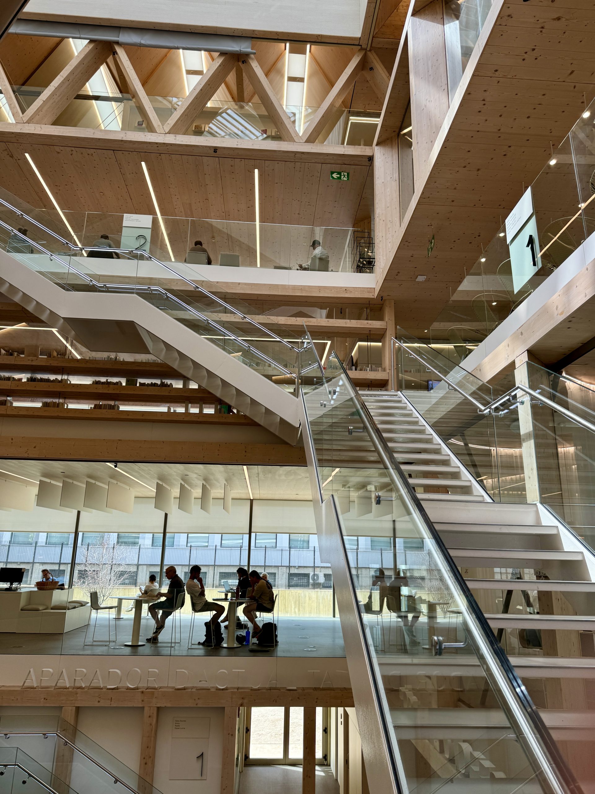 Infine non ci siamo persi la Biblioteca Gabriel García Márquez, la migliore biblioteca del mondo secondo la Federazione internazionale delle associazioni e delle istituzioni bibliotecarie, riunitasi a Rotterdam nel 2023. La Biblioteca sorge nel quartiere operaio di Sant Martí de Provençals, si sviluppa su sei piani ed ha una capienza di circa 800 persone. Una biblioteca futuristica, in legno, adatta a grandi e bambini con abissini spazi. Non potevamo non vederla.