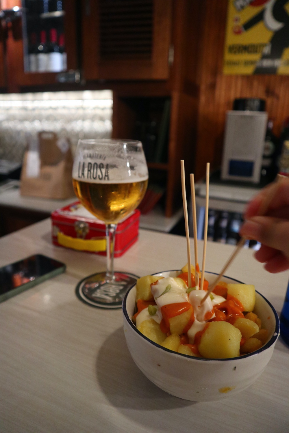 Un altro posto che vi consiglio, non è un locale storico ma è un posto dove ci siamo trovati molto bene, è Rosa Vermuteria & Colmado. Non avevamo prenotato, abbiamo pranzato alle 14.30 come veri spagnoli (il locale era tutto pieno) e ci hanno messo “alla barra”, al bancone. Tutto buonissimo e tutto bello, davvero un’ottima esperienza local che consiglio vivamente. Rosa Vermuteria & Colmado si trova in Carrer La Rosa nel quartiere La Lonja.